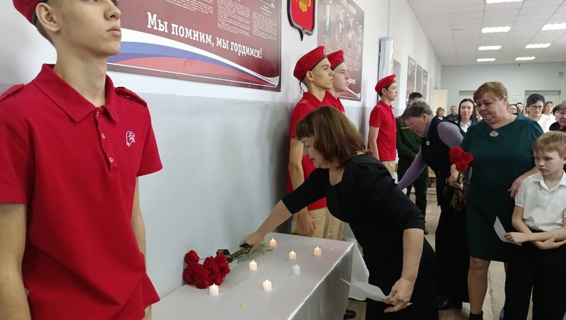 В церемонии приняли участие руководитель отдела образования Бибигуль Лекерова, младший лейтенант Ренат Пскекбаев, представитель военного комиссариата Красноярского и Володарского районов Астраханской области, а также родные, близкие и друзья героев. Слова присутствующих звучали как напоминание о том, что долг каждого из нас — помнить и уважать тех, кто защищал нашу родину. Почетное право открыть мемориальные доски было предоставлено юному поколению, будущим защитникам Отечества — юнармейцам школы. К школьному мемориалу возложили живые цветы и почтили память героев, отдавших свою жизнь во имя Родины, минутой молчания.