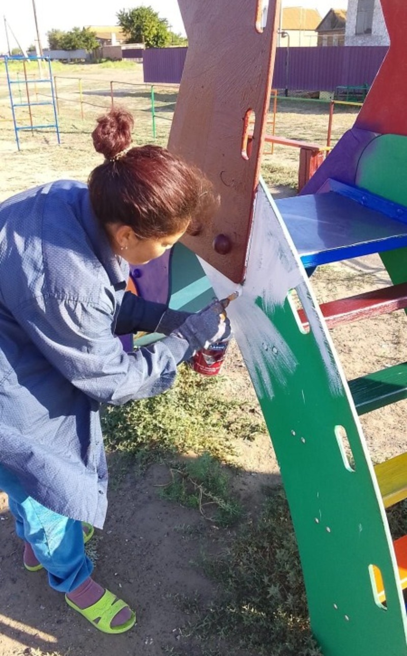 Жители села Алтынжар привели в порядок детскую игровую площадку по улице Гагарина. Они решили самостоятельно покрасить детскую площадку, освежить её внешний вид. Краску для этого за свои средства приобрела местная жительница Аделя Ещанова.