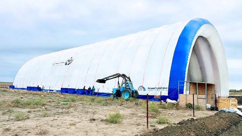 На сельхозпредприятии «Фьючер Эвергроу» нашли практичное решение одной из проблем агробизнеса — хранения урожая. В окрестностях Алтынжара, где ведет свою деятельность компания, установили надувную конструкцию, обеспечивающую надежную защиту от осадков, ветра и резких температурных перепадов, дооснащение которой произведут на следующих этапах развития проекта. В пневмоангаре площадью чуть более 2000 квадратных метров уже хранят лук, который вырастили на площади 36 гектаров орошаемых земель. В этом году предприятие получило 2703 тонны лука ранних, средних и поздних сортов, качество которого подтвердил Центр оценки качества. Поэтому аграрии активно ищут точки сбыта продукции, выращенной на территории Володарского района.