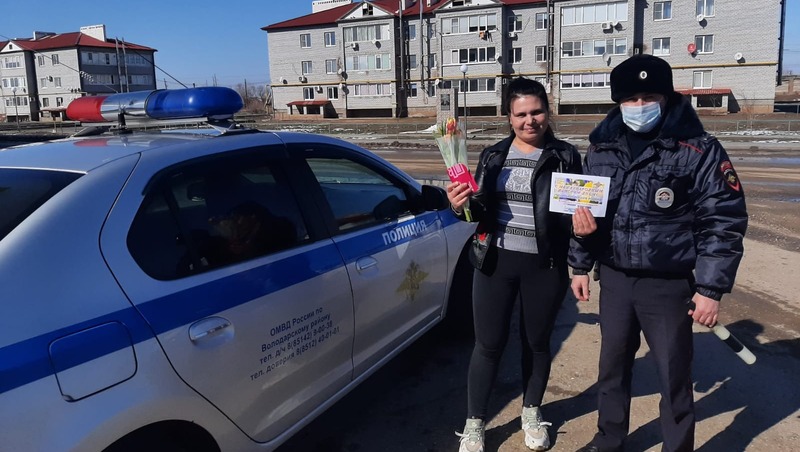 В преддверии Международного женского дня сотрудники Госавтоинспекции Володарского района вышли на улицы районного центра, чтобы поздравить автоледи с весенним праздником. Вместо проверки документов сотрудники ГИБДД останавливали машины, чтобы подарить цветы сидящим за рулем женщинам.