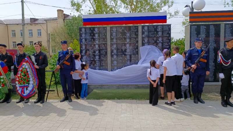 А тем временем руководство поселковой администрации готовило место: заливали фундамент, возводили стену, к которой в начале мая установили мраморные плиты. Их три, на каждой по 20 имен героев, сложивших свои головы при проведении спецоперации. На открытии памятника были семьи военнослужащих, одетые в белые футболки с портретами своих героев. «Мой сын - мой герой», «Мой муж - герой», «Мой муж - моя гордость» - было написано на их спинах. Слова благодарности и поддержки звучали от представителей регионального правительства, Астраханской Думы, муниципалитета, и духовенства Володарского района, военкома М. Гафурова, представителей общественных организаций.