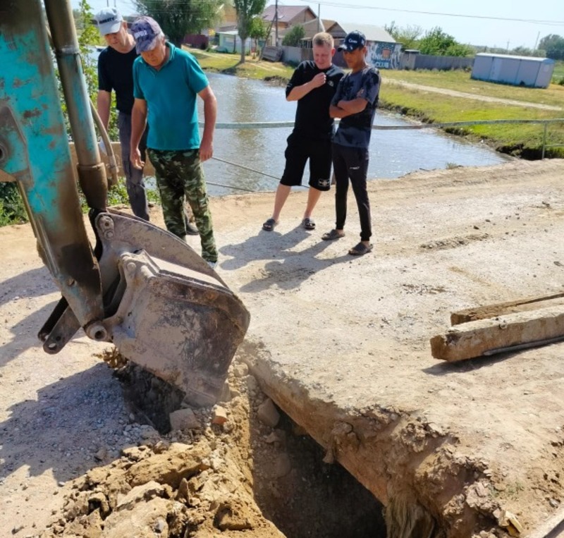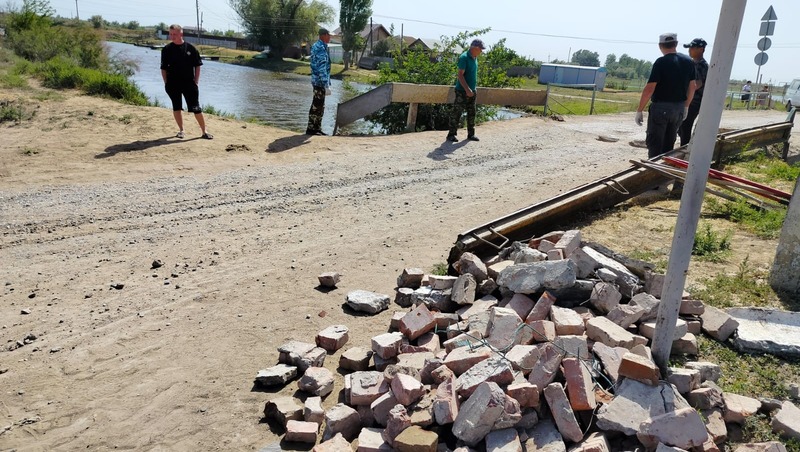 На помощь вышел экскаваторщик Сергей Кузнецов. Профессионал своего дела, умело орудующий ковшом, знающий, как подкопать, как подсыпать. Николай Михайлович Брякин тоже был в первых рядах. Руководитель мелиоративной механизированной колонны всегда отзывается на призывы о помощи, их поддержали Асылбек и Жанбулат Ашгалиевы, Руслан Войнов, Николай Коротков, Владимир Челышев, Юрий Рыбников. Обвал моста им пришлось чинить тем, что имелось под рукой. Сначала образовавшиеся провалы забивали кирпичами. Крупные кирпичи засыпали мелкими - боем, который дробили вручную, а поверх - железобетонные опоры.