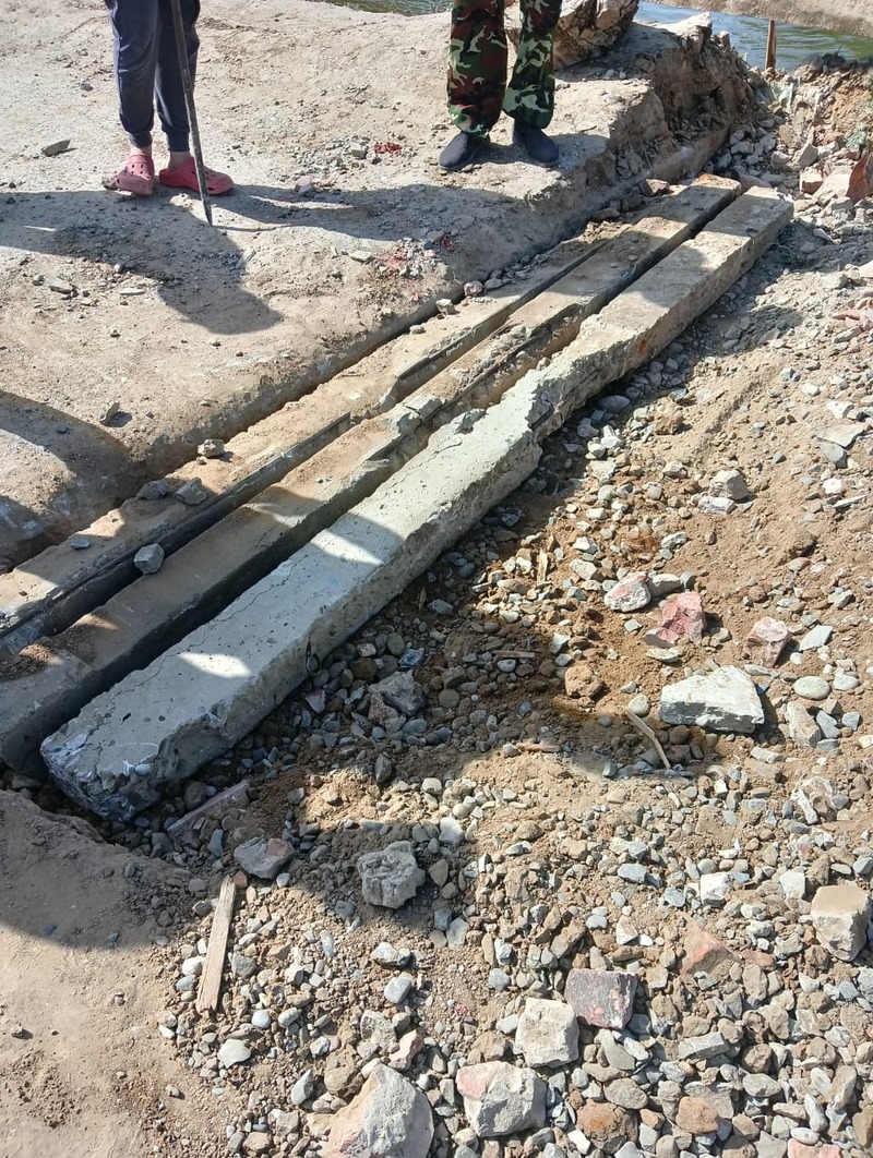 Внутренние металлические конструкции моста сгнили давно. Поэтому когда в селе разбирали здание клуба, глава просила оставить металлические листы. Ими можно было укрепить конструкции, опять- таки кустарно. Но их не оставили. Поэтому сельская бригада использовала подручный материал. Раньше они укладывали в зияющие дыры мешки с песком, но прошло время, половодье их подмыло, мешкотара сгнила, и песок высыпался. Образовались провалы.